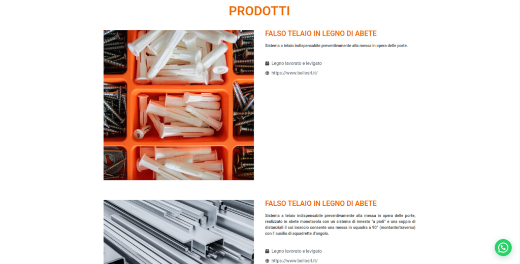 La struttura del sito è semplice e orientata alla navigazione pratica: Menu principale con sezioni come Chi siamo, Il nostro team, Prodotti, I nostri clienti e Social; Contenuti visuali che mostrano esempi di materiali, soluzioni tecniche o immagini correlate ai prodotti; Moduli di contatto e riferimenti diretti per comunicare con l’azienda (numero di telefono, email, richiesta di appuntamento). Questa struttura indica che fin dall’inizio l’obiettivo è stato quello di favorire un contatto rapido con l’utente e fornire informazioni utili in pochi passaggi.